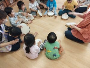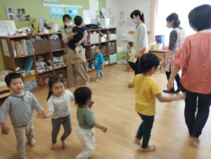 午前中はリトミックがあり、みんな音に合わせて楽しく体を動かしました♪