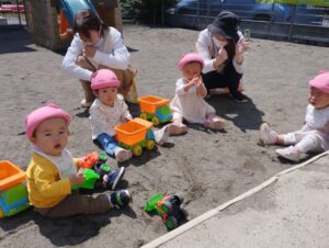 カスタネット組さんは、園庭でおもちゃをしたりゆーっくり歩いてお散歩して遊びましたよ♬