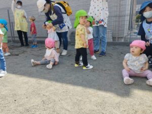 園庭の日陰で周りをキョロキョロしながらも泣かずに過ごせるようになりました😀凄い✌️