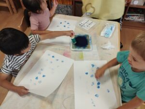 青色のスタンプを使って「雨」を作りました☔