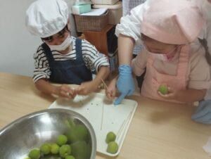 梅ジュース作りの下準備でピアノ組さんが梅のヘタ取りをしてくれました✨