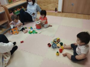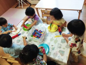 カスタネット組さんはお部屋で遊びながら順番に製作をしました♪