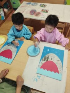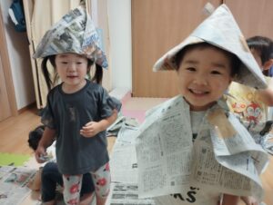 気持を切り替えて絵の具や新聞紙で遊んだタンバリン組さん!