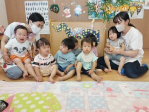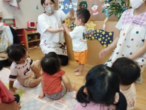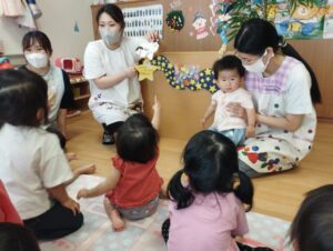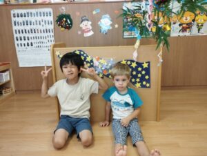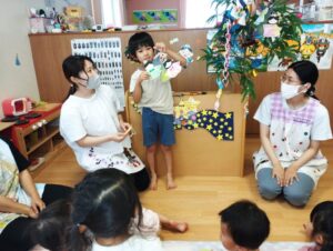 織姫や彦星が登場するペープサートを見たり、「たなばたさま」の歌をみんなで歌いました🎶