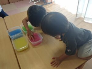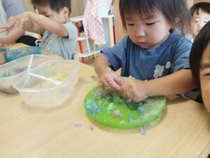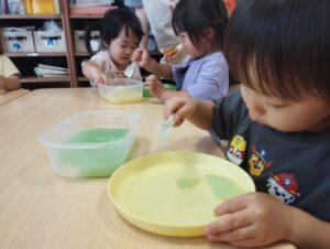 ピアノ組、タンバリン組さんは寒天遊びをしました✨