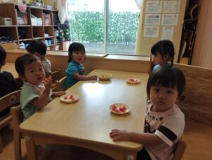 棒がスイカに当たると、ポンっと音が鳴りました♪