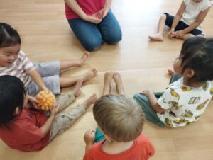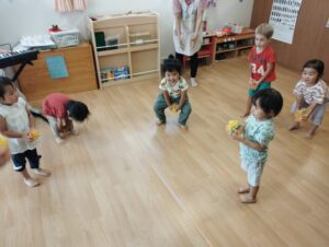 ふわふわボールはもっと触っていたくて、ぎっゅっと手に持っていました☺