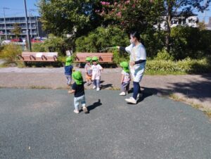 カスタネット組さんは園庭、タンバリン組さんは駅周辺のお散歩、ピアノ組さんはアキシマエンシスとそれぞれのクラスでお外遊びに行きました🌼