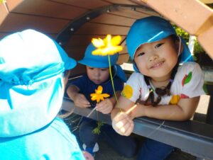 お花を摘んで手に持っていたり、砂場遊びの飾りにしていました🌼