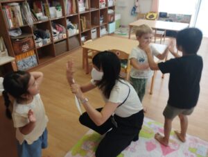 ハローソングか始まると一気に英語モードの子どもたち😊凄いですね〜‼