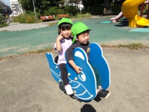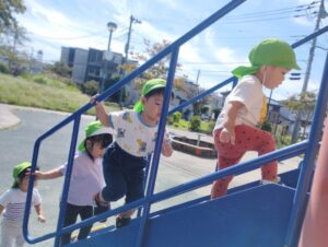 スズ組さんは、朝の会でみんなからすべり台のある公園がいいという意見が出たので富士見公園に行ってきました!