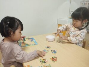 少し難易度の高いぽっとん落としや大好きなアンパンマンのパズルに挑戦中のスズさん💪