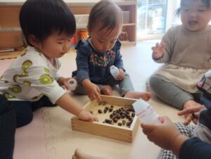 みんな集中🥲凄いでしょ🥰夢中で、どんぐりを容器に、詰めてましたよ😁