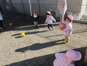 カスタネット組さんは園庭でボール遊びと砂遊びをしました❢