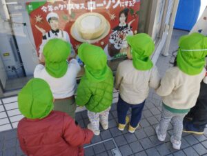 駅前のコンビニのポスターがクリスマスケーキになっていてスズ組の子ども達は釘付けになっていました😻🍰笑