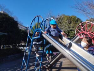 お山登りの後は‥滑り台やブランコなどの固定遊具を楽しんだり‥♡