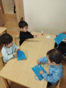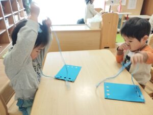 紐通しは難しかったけど、紐が通せると喜んでいました✨