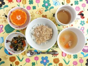 先生に作ってもらい、子どもたちはバケツを持ってお裾分けをしてもらいに行きます☺