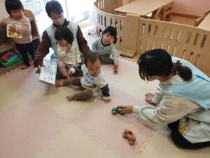 お友達のママを見て不思議そうにしている子どもや嬉しそうに「遊ぼう〜」と近くに寄っていく子どもの姿がありました☺
