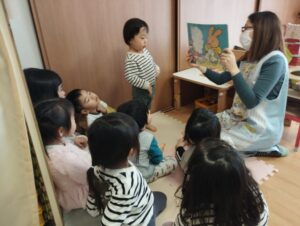 ごはんの前に保護者の方に絵本を読んでもらいました!