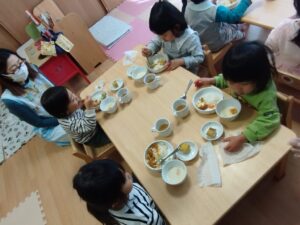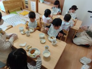 朝の会が終わるとおやつの時間😋