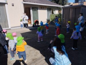「ダンゴムシ体操」や「バナナ体操」を、前立つお友だちも含めみんなで元気に踊りました!