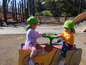 シーソーが動くと、周りのお友だちは声を出したり後ろで手を添えて盛り上げていましたよ☺