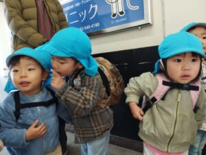 電車に乗るために駅へ到着すると「電車ではシーだよ!」と静かにする約束を確認し合う姿や、「早く電車、乗りたいね!」とワクワクするような様子が見られました👀♡