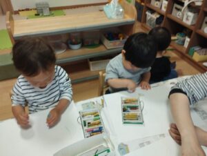 室内ではお絵描きをしたり