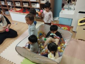 タンバリン組さんにお邪魔してボールプールをしたり