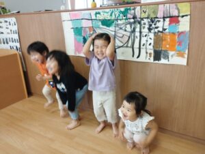 英語の曲に合わせて体を動かします