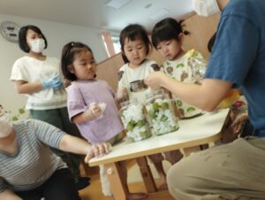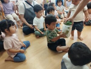 ピアノ組さんが、みんなの前で、上手に瓶詰めをしてくれました☆