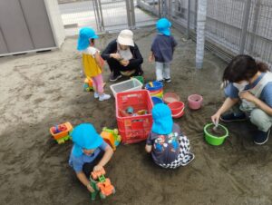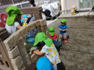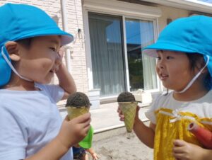 今日は梅雨の晴れ間でとっても暑くなってますね💦園庭遊びを満喫しました💞アイスクリーム作りしたのかな~😋暑いからきっと美味しいよね〜🎶