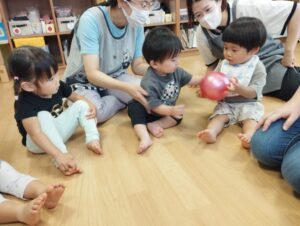 ボールを隣の人へ「はい、どーぞ」