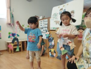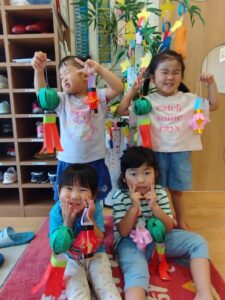 『たなばたさま』のお歌も各クラス朝の会や帰りの会で歌っていたので、可愛い振り付けまで完璧✨元気な声がたくさん聞こえました🎶