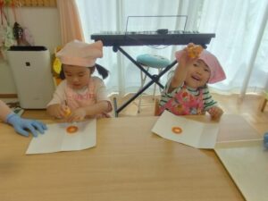 少しドキドキ❤してしまうお友だちもいましたが、頑張って前に出てみたり、どうやって作ったのか一生懸命発表していましたよ!