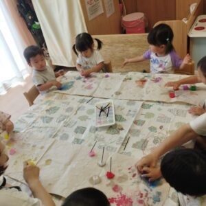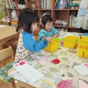 ピアノ組のお友だちは、絵画教室です。