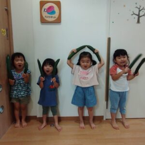 今日は、🥒が、大収穫でした~✌️そして、パプリカに色が、付き場じめで、大はしゃぎ😁やったねー✌️😁