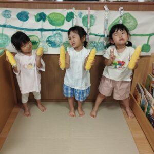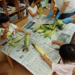 続いてピアノ組の子どもたちはとうもろこしの皮むきにチャレンジしました🌽🌟