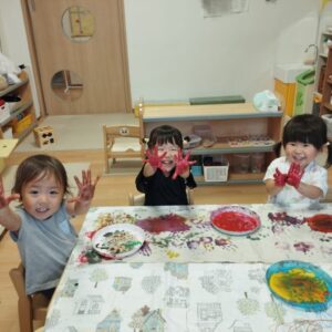 スズ組さんはハンドペイントと片栗粉遊びをしました❢