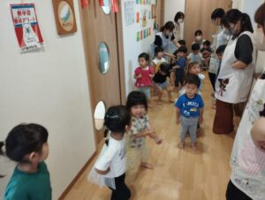 暑かったので廊下でみんな集まり踊りましたよ♪