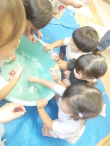 「つめたーい」「あおいね〜」とお話を楽しんでいましたよ!