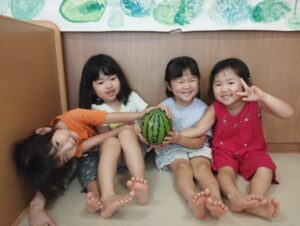 保育園に登園すると「スイカ割りの日だね!」「スイカ割るの!」と楽しみにしている声が聞こえてきました😌💞
