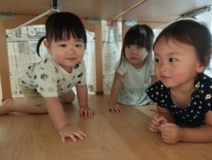 ↓先生に覗かれると「キャ〜❢」と大喜びの中の子ども達🤭