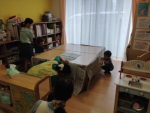 お部屋に戻ってからはテーブルを家に変身させて遊びました❢