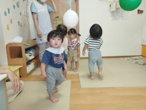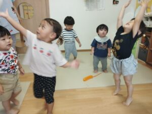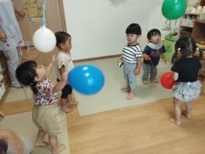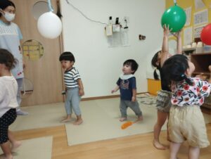 カスタネット組は、スズ組にお邪魔しました🎶風船🎈遊びをしましたよ!みんな大はしゃぎ🤭ジャンプ、アタック🤭将来オリンピックの選手候補かも🤭😁