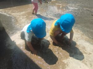 最後は大好きな泥遊びに変わり、泥の感触を楽しみながら遊んでいました🤗