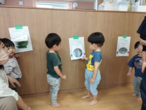 今日は、食育で、やさいのおなかのお話がありました😊野菜を切ったら中はどうなってる?とみんなお話を聞いたり写真を見たりと楽しんでいましたよ✌️
