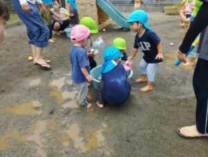 お話の後は、水遊び😁みんな大はしゃぎでとっても楽しんでいましたよ🎶✌️