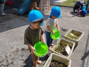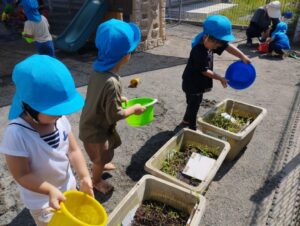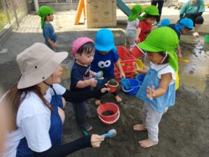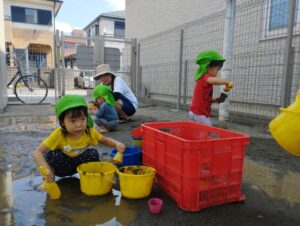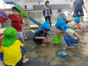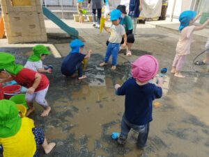 今日は、園庭で水遊びからの泥遊びをしました❢ほとんどのお友だちは、お水遊びだ~い好き✨とっても楽しそうでした😁